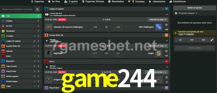O game244 oferece uma grande seleção de opções de apostas em e-sports com probabilidades competitivas